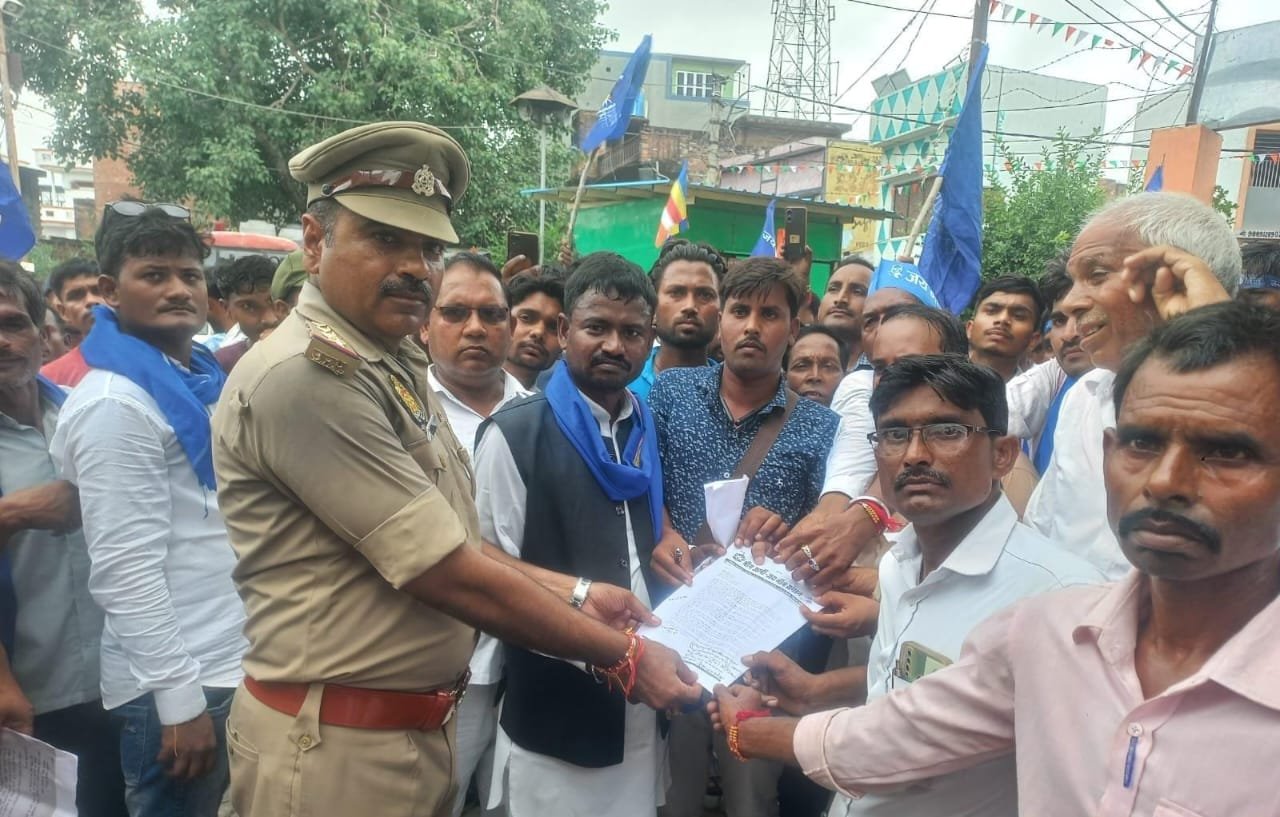 प्रताप नगर चौराहा पर चौकी प्रभारी नीरज कुमार सुबह से ही पूरे पुलिस फोर्स के साथ मौजूद रहे और जुलूस निकालने वालों को ज्ञापन लेने को कहा लेकिन बीएसपी भीम आर्मी जय भीम संगठन के द्वारा कोतवाली परिसर तक जुलूस निकालकर कोतवाली प्रभारी को ज्ञापन सौंपा।