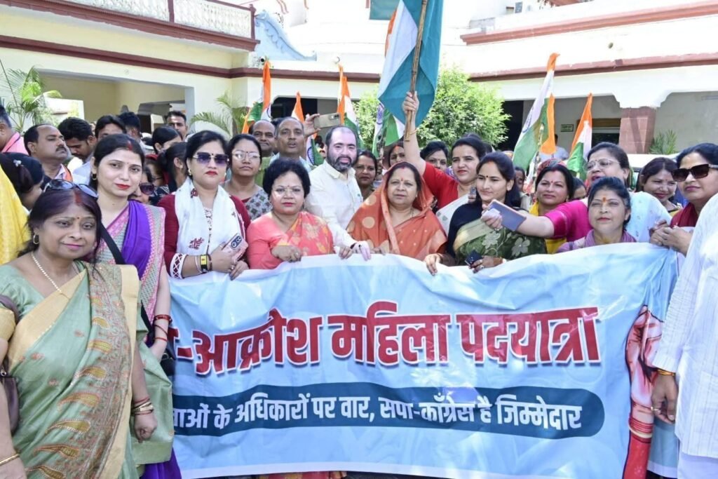 इस पदयात्रा का नेतृत्व खाद्य एवं रसद राज्यमंत्री सतीश चन्द्र शर्मा ने किया, जिसमें बड़ी संख्या में महिला कार्यकर्ताओं ने भाग लेते हुए जोरदार नारेबाजी की।