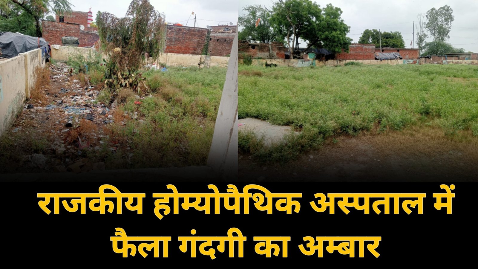 राजकीय होम्योपैथिक अस्पताल में फैला गंदगी का अम्बार बड़ी बड़ी घास दे रही गंदगी की गवाही